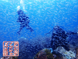 8月25日(日) IOP 水温22〜29度 透明度〜18m〜 今日もイトヒキアジには出会えませんでしたが群れが凄いことになって来ています☆ エキジット口にはアカカマスの大群が埋め尽くしていて、キビナゴなどの大群がカンパチ若魚群や ナンヨウカイワリたちに追いかけられてブンブン右往左往するので、視線を送るのがたいへん!!