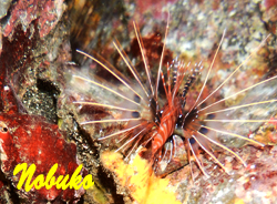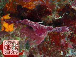 〜20m〜 さすがに本日のゲスト様方は流れを嫌い遠方行きを避けられましたので、 近場でカエルアンコウの観察・・と決め込んだのですが、なんと大当たり!! どうやら1の根のクエ穴辺りから泳いできたオオモンカエルアンコウは デ〜ン!と構えて動かない砂地中央の彼女のもとへと無事到着するのを見届けました☆