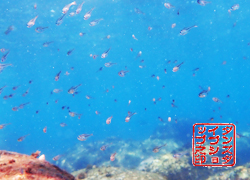 | 8月24日(日)IOP 水温16度〜26度 透明度 〜8m〜 今日のゲストさんたちは揃ってヌクヌク・エリアをご所望でしたので ゆるりゆるりとサンカクまで泳ぎ、浅場の魚群と景観を楽しんできました☆ 透明度の悪さはちょっと残念でしたが、やはり近場にはない雰囲気はGOOD!です♪