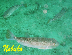 | 10月6日(月)川奈 水温23度〜24度 透明度〜15m〜 今日はゲストさんチョイスの川奈でダイビング〜☆ お天気も良く明るい海中にイワシやネンブツダイ達の幼魚群がキラキラ 輝いていました♪本日はフグに当たり(食したわけではありません!)ありでした☆